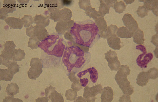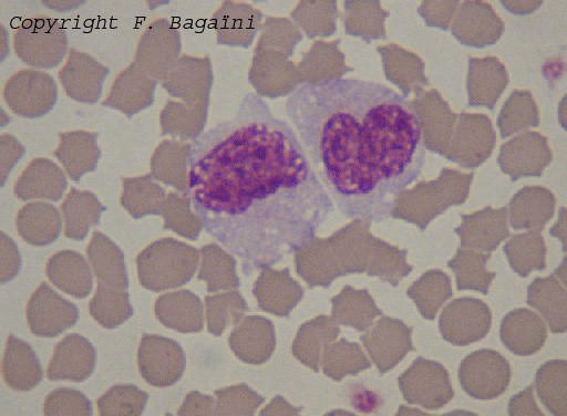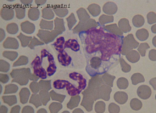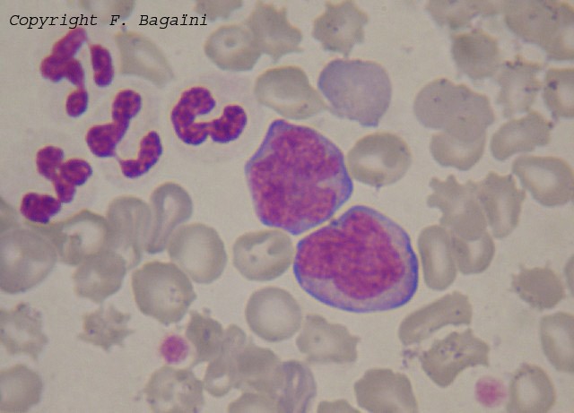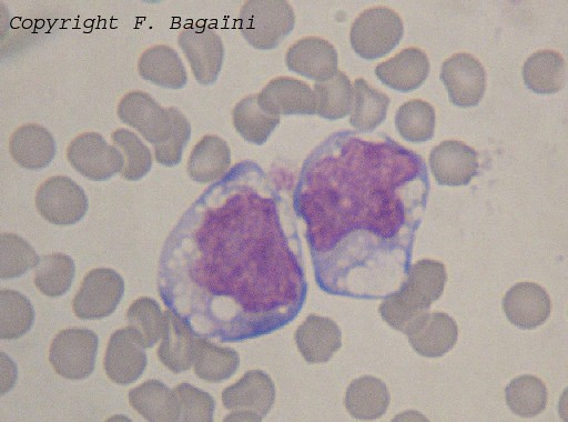 Les états de monocytose réactionnelle sont associés à une activation des monocytes.Cette chienne présentait une pyélonéphrite. Cliquer sur l'image pour l'agrandir. |