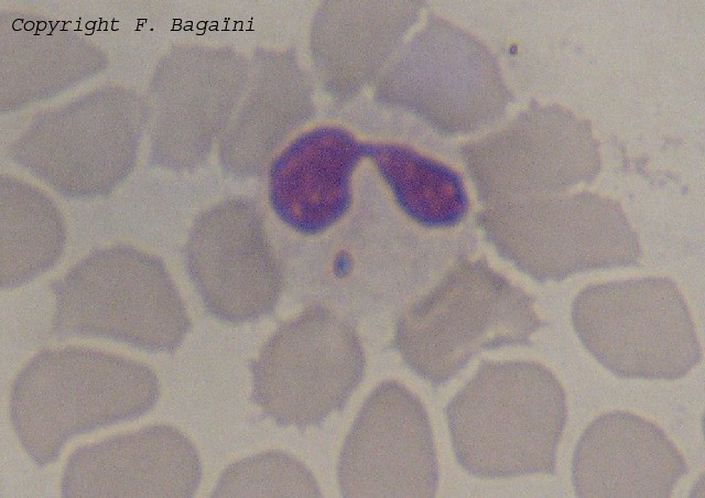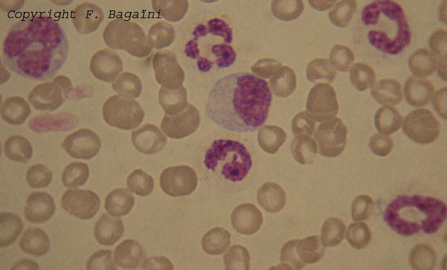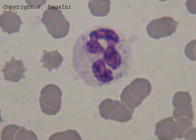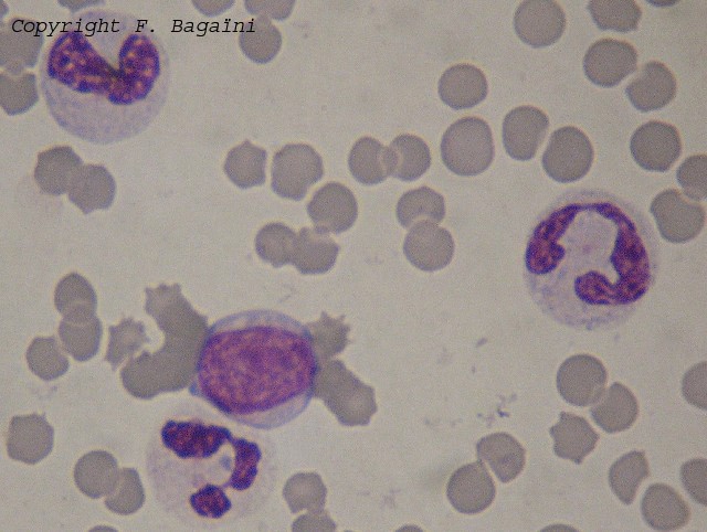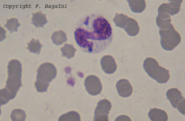 Chez ce chat atteint du FIV, les neutrophiles sont de grande taille.