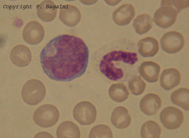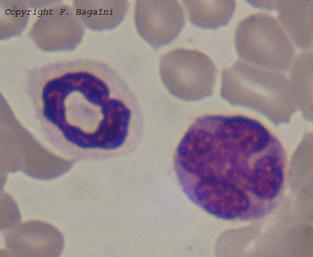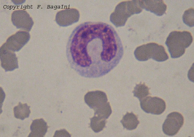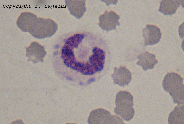 inclusions claires, occupant la moitié du volume des neutrophiles.